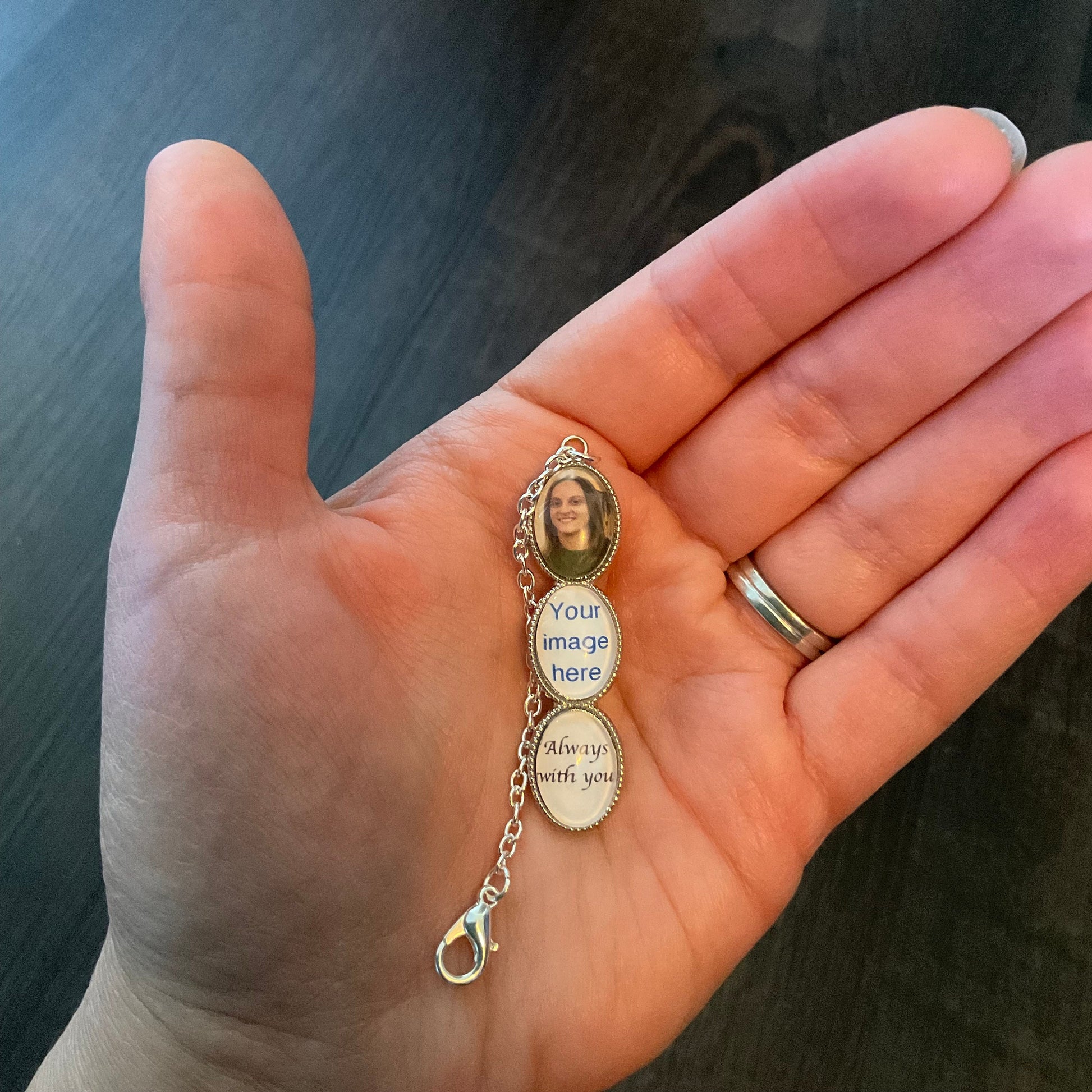 Upload the photos/images you want inside the charm when you make your purchase. You may also email support@somethingsallyco.com. Please send highest quality photo possible and zoomed out enough to fit the image within the oval shaped charm. For printed messages, you can send an image or describe how you would like the design and a proof will be sent to you.