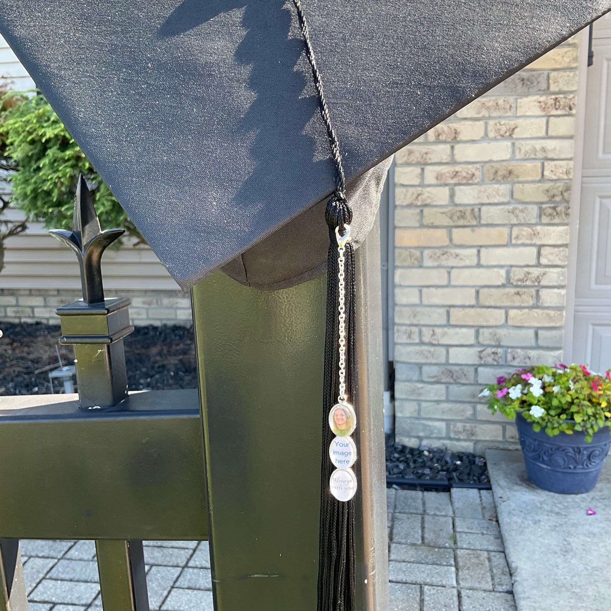 Graduation Cap Photo Charm, Graduation Gift Memory Chain, Tassel Memorial Charm, Mortarboard Decoration, Grad Memorial Charm, 3 Photo Charm