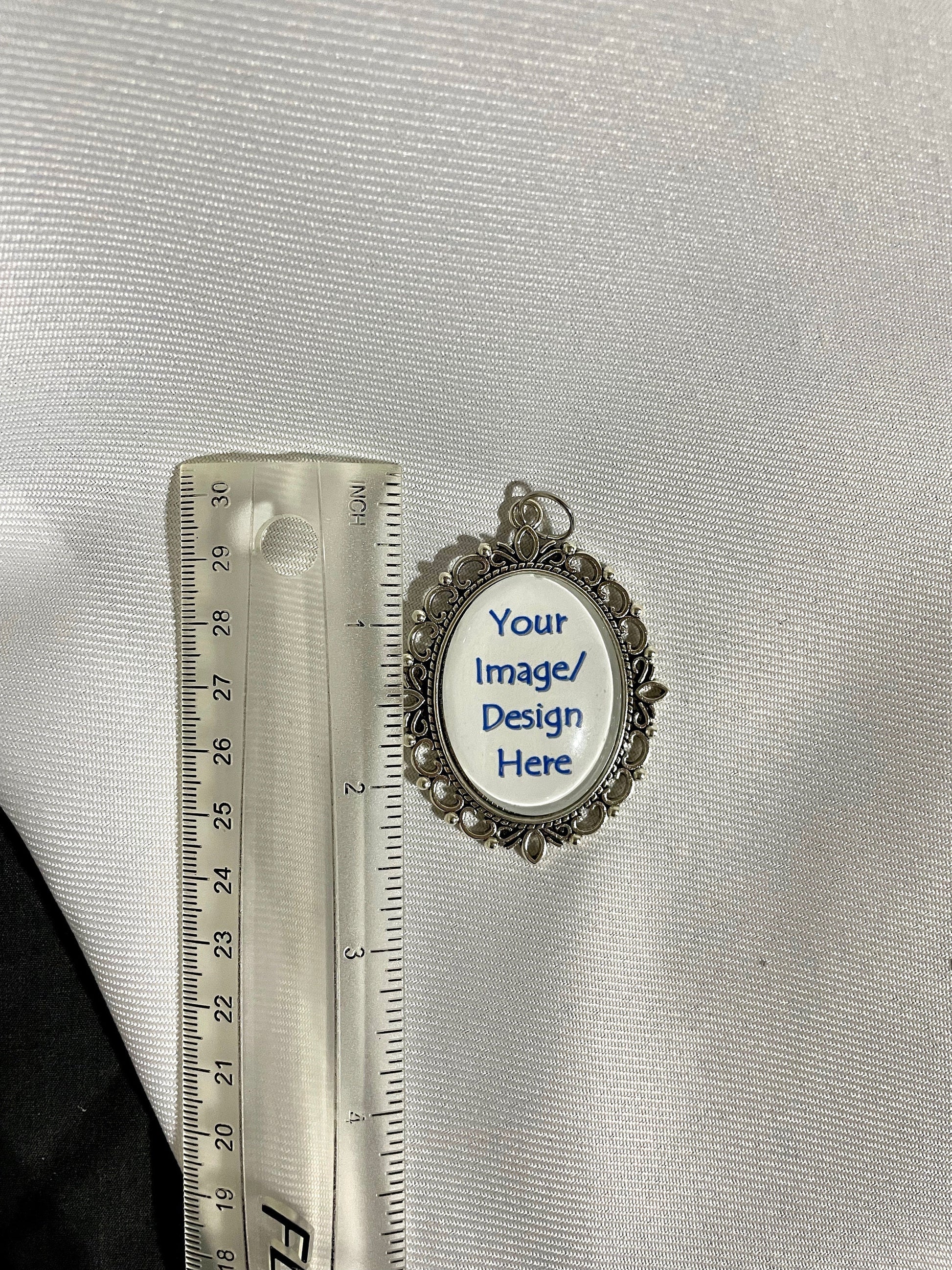 Metal alloy ornament with glass dome. Ornament is antique silver in color and is 2 3/8" tall and 1 7/8" wide. Jump ring included. Swirled S-shaped wire hook can be added for $1. Hook adds approximately 1 3/4" to the height when ornament is hung. Black ornament stand is available for an extra $4. Ornament stand is 9 1/4" tall. Base is approximately 4" in diameter.