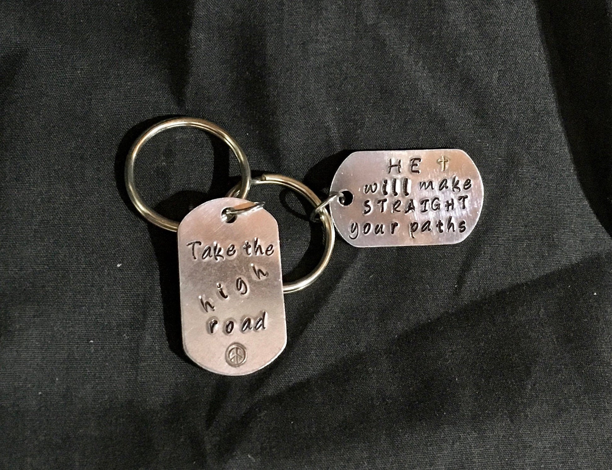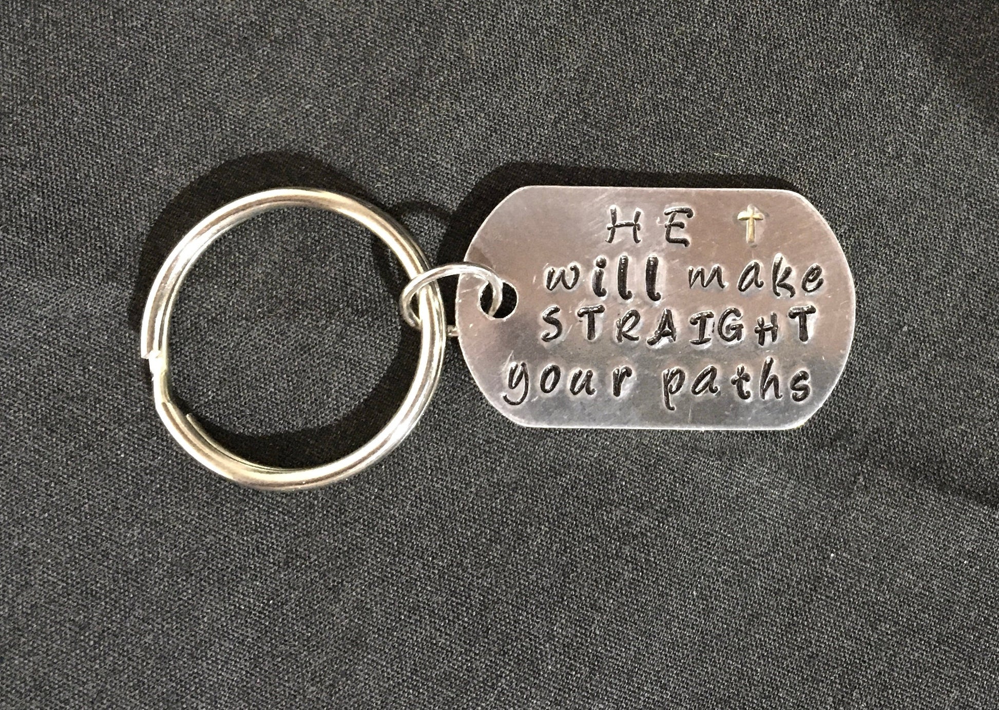 Customize your keychain with a personal message, quote, saying, verse, word, date, etc. Makes a great gift!